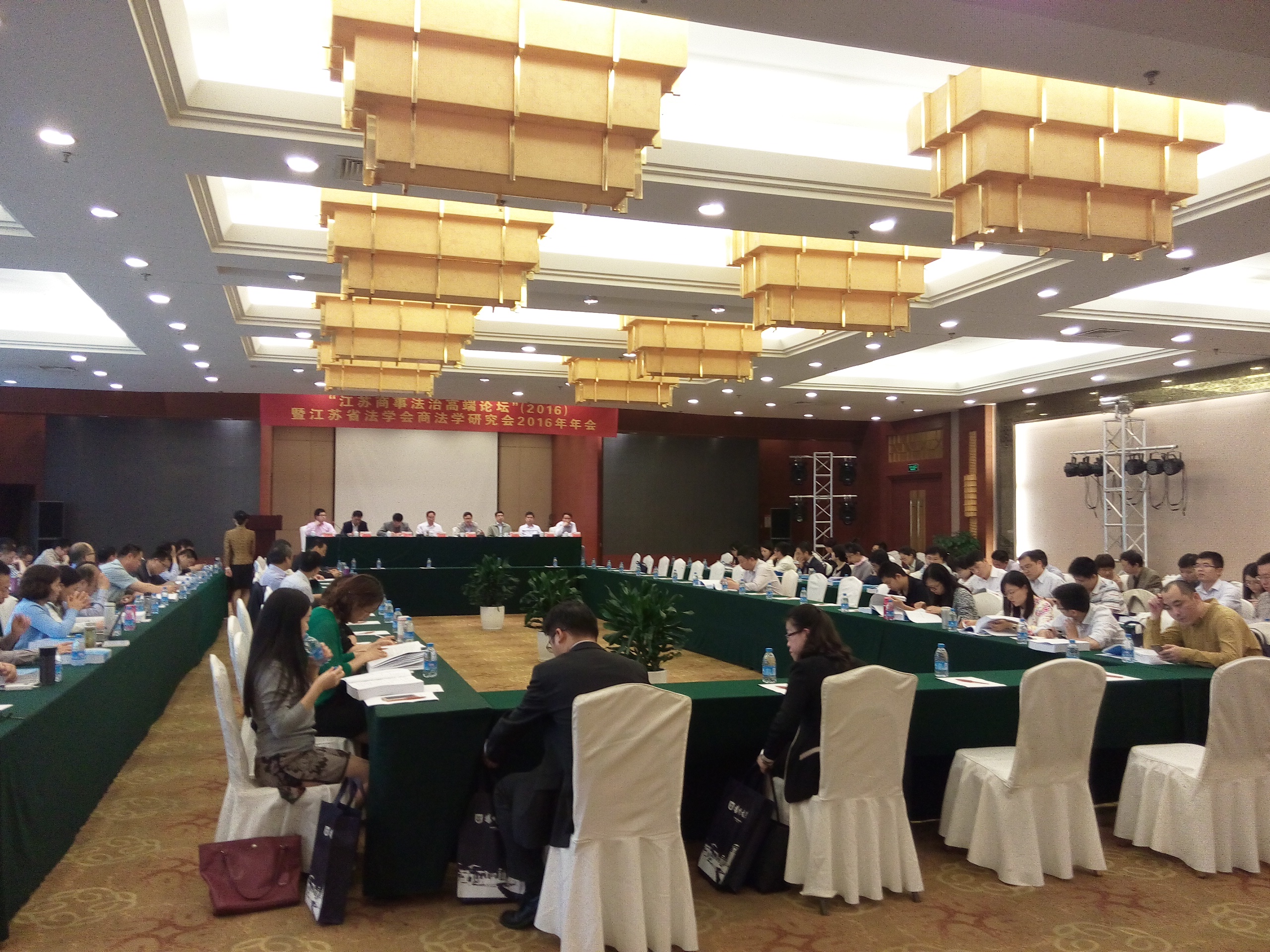 6月3日,“江苏商事法治高端论坛”(2016)暨江苏省法学会商法研究会2016年年会在扬州召开。会议开幕式由韩漫画 院长、江苏省法学会商法学研究会副会长兼秘书长王建文教授主持。江苏省法学会副会长刘克希(正厅长级)出席会议并代表省法学会讲话。扬州大学副校长陈亚平,江苏省法学会商法学研究会会长、南京大学教授范健分别致辞。出席会议且担任会议单元主持人的江苏省法学会商法学研究会副会长有:江苏省人大常委会法工委副主任王腊生(正厅长级)、江苏省高级人民法院审委会专职委员李后龙、中国银监会江苏监管局副局长丁灿、中国证监会江苏监管局副局长凌峰、中国保监会江苏监管局副局长王宝敏、南京仲裁委员会秘书长夏鸣。江苏省高级人民法院民二庭庭长夏正芳、南京市中级人民法院副院长姚志坚、盐城市人民政府法制办主任兼盐城仲裁委员会秘书长戴红春分别做会议主旨发言。另外,还有来自省内各高校、研究机构、法律实务部门的专家学者100余人参加会议。