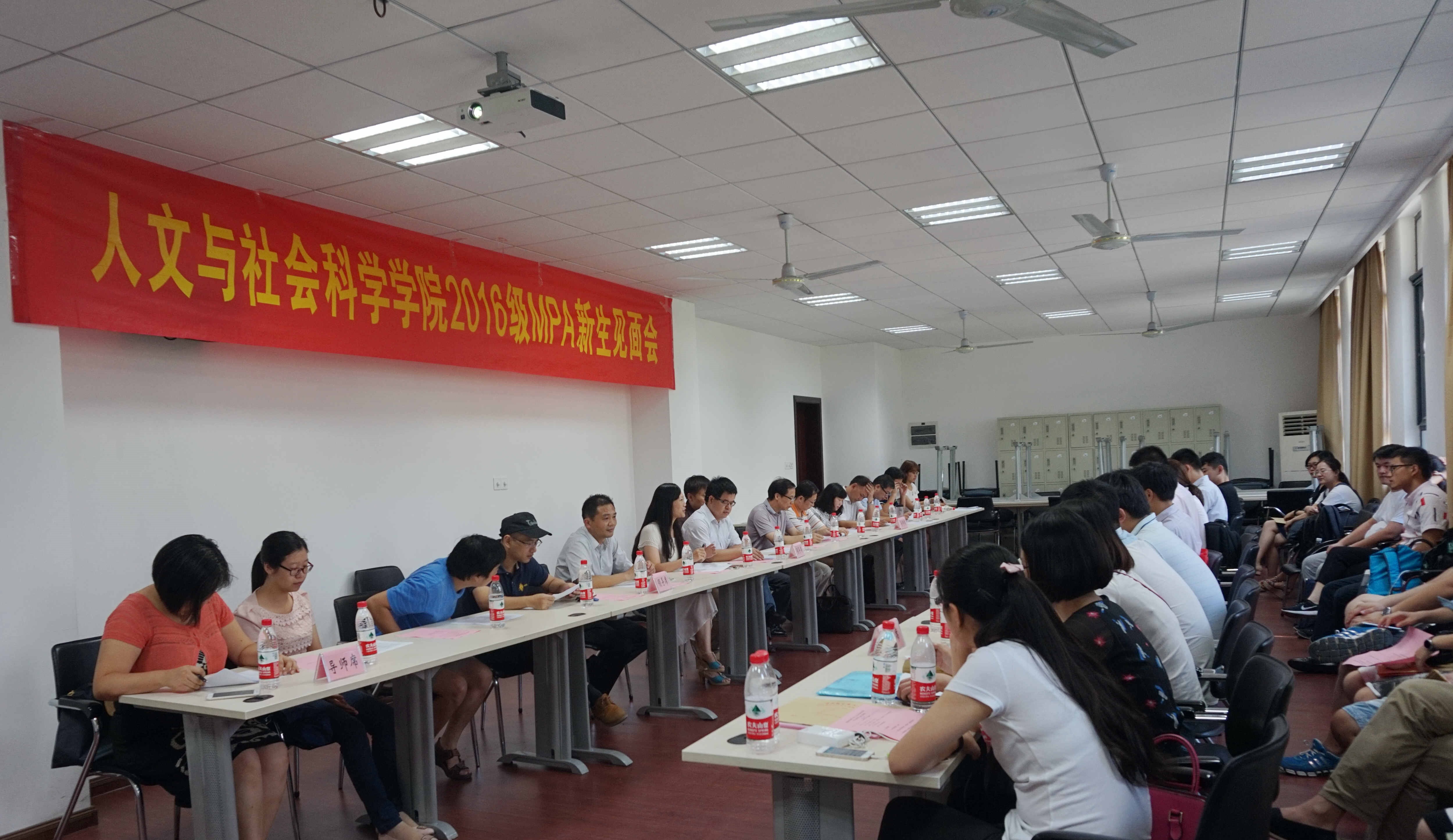 为增强新生对大学生活的了解,帮助新生尽快融入人文学院大家庭,9月2日中午13:00点,人文学院2016级MPA新生见面会在人文学院楼210教室举行。院长王建文、副院长李栗燕、副院长郑易平、16级MPA班主任尹春苹,20余名新生导师以及全体16级MPA新生参加了见面会。