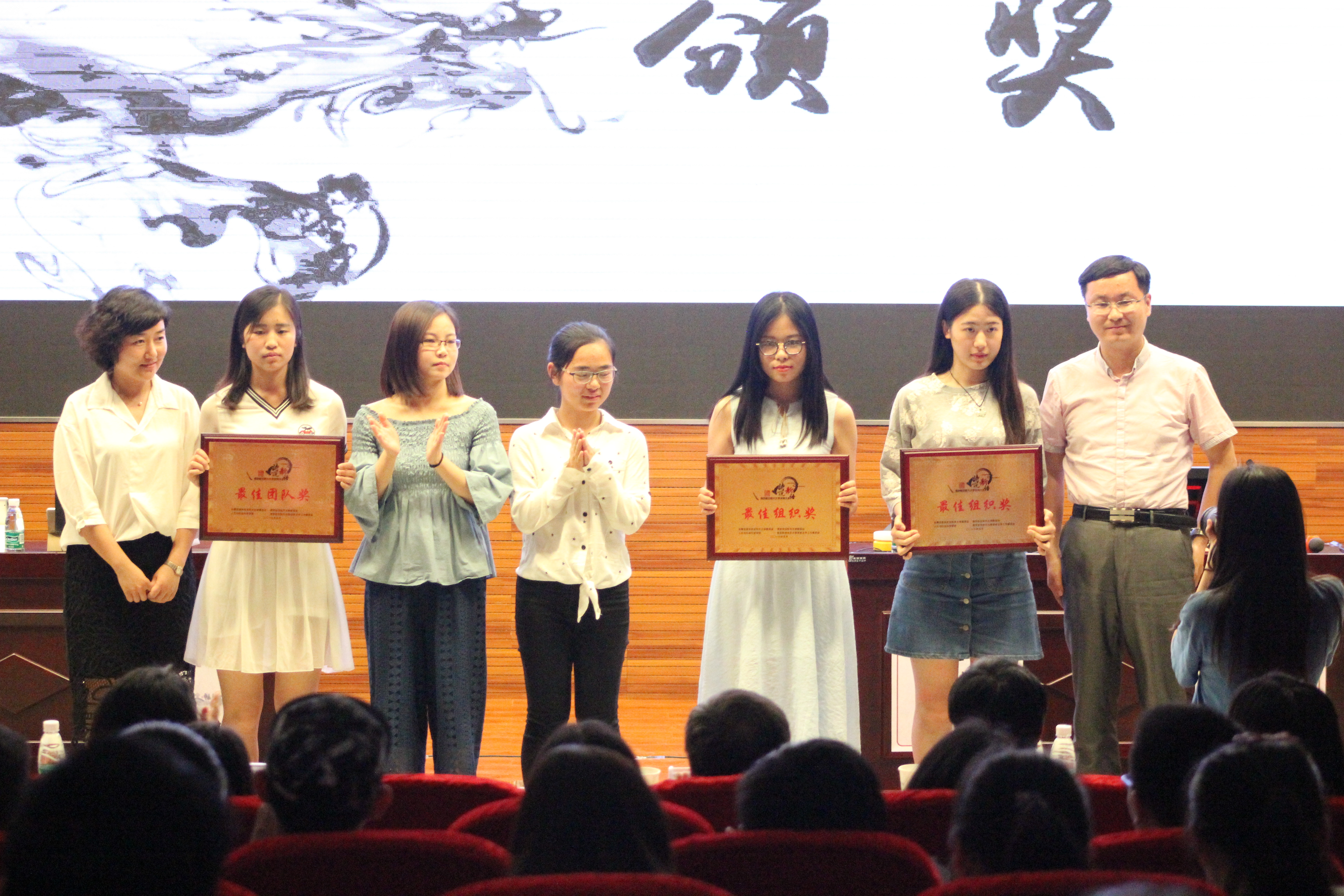 经过线上线下海选、复赛对决层层选拔,有8名来自不同学院的诗词达人从428名报名选手中脱颖而出进行最终角逐。决赛现场分设“耿耿星河欲曙天”、“春城无处不飞花”、“一字一句总是情”三个精彩环节。艺术学院环境设计专业的同学根据诗句精心设计了手绘视频题目,精彩呈现让现场观众脑洞大开,场上氛围逐渐热烈。经典环节“飞花令”则更加惊心动魄,不仅考察选手的诗词储备量,更是临场反应能力的较量,选手们你来我往难分胜负,绝处逢生引的现场观众阵阵惊呼,胡媛老师称赞选手并为对飞花令中的意向词句进行了经常点评。赛程过半,书法爱好者航空宇航学院的余鹏同学现场泼墨,带领大家重温校训“智周万物,道济天下”的深刻含义。此后比赛更为焦灼,校电视台播音员主持人、国家级普通话测试员周敏燕老师,用优美的声音亲自为选手们播报题目,并带领全场共同朗诵了一首《望江南·超然台作》,现场观众不仅受到传统文化熏陶,更享受了一场视听盛宴。最终经过激烈的加赛角逐,来自经济管理学院的宗燕同学夺取大赛桂冠。