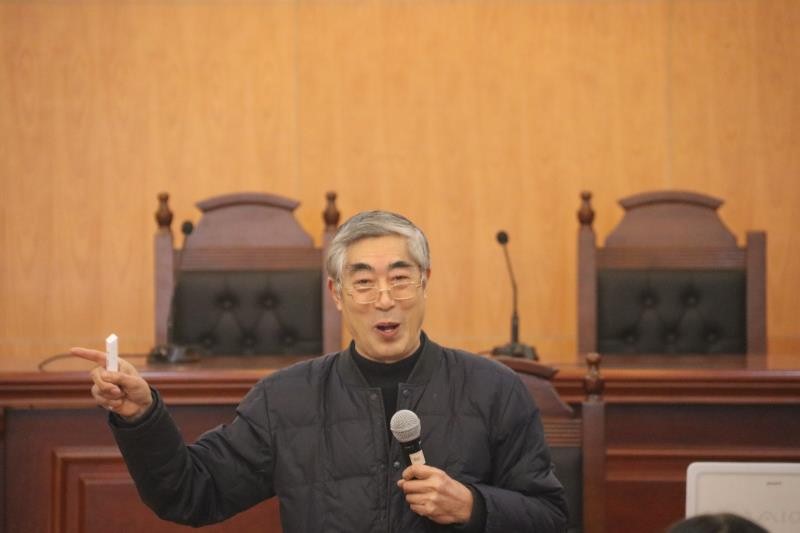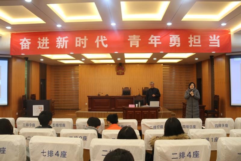 1月5日下午两点,为学习贯彻党的十九大精神,韩漫画 邀请校关工委常务副主任丁荣茂老师在模拟法庭举行了“拥抱新时代青春谱华章”的主题党课,由学院党委副书记尹春苹主持,人文学院全体党员与低年级学生聆听了党课。