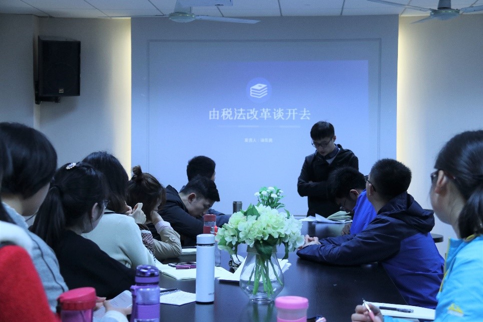 法学研究生陈晓康对监察体系从源起、历史演进的过程到监察委员会的成立进行了主题发言;徐岳南同学以“两会”税法改革为切入点,以国税地税合并及房产税的相关问题为侧重点进行了主题发言。