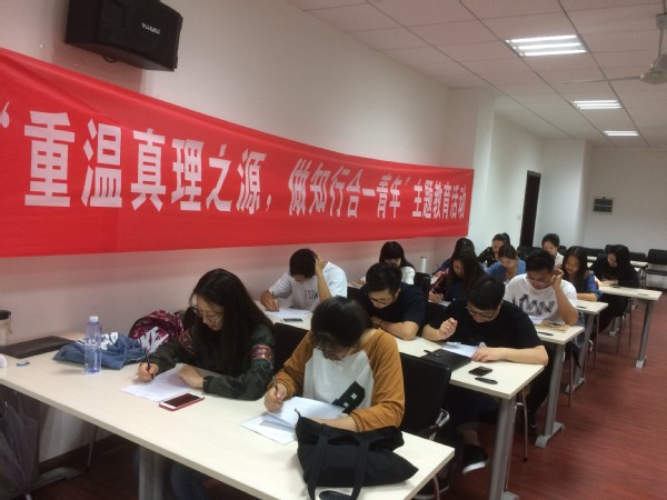 党支部为帮助同学们学有实效,精心设计了主题教育活动内容,包括回顾讲话精神、理论知识竞赛、共读讲话节选、主题交流发言等多个环节。首先2017级研究生第二支部书记尚靖凯同学带领全体同学重温了习总书记在纪念马克思诞辰200周年大会上重要讲话的主要内容,帮助同学们深刻认识到总书记的讲话坚定了共产党人一脉相承的马克思主义信仰,更振奋了朝气蓬勃、充满力量的青年心灵。活动第二个环节支部特别设计了马克思主义理论知识微竞赛,同学们认真思索,奋笔疾书,将自己对马克思主义理论的掌握情况跃然纸上。随后全体与会成员共同朗读了习总书记重要讲话节选内容。“马克思坚信历史潮流奔腾向前,只要人民成为自己的主人、社会的主人、人类社会发展的主人,共产主义理想就一定能够在不断改变现存状况的现实运动中一步一步实现……”深刻的道理也发乎口,听乎耳,明于心。随后同学们围绕“习总书记对青年的期望”,“马克思主义理论体系”,“我眼中的马克思”和“共产党员应当具备什么品质”四个主题进行精彩的学习分享,以王梦珂、赵彬等同学为代表分别表达了自己的学习体会,活动最后支部书记尚靖凯带领全体同学对本次活动做了回顾总结,勉励在场同学铭记对青年提出的爱国、励志、求真、力行四点期望,认真学习和实践马克思主义理论,讲真话,求真理,做能知行合一的实干有志青年。