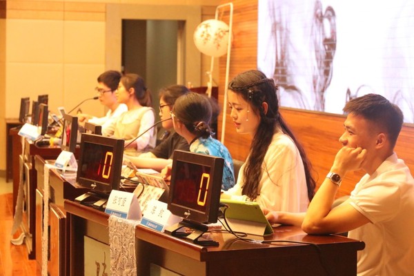 经过线上、线下海选的层层选拔,最后8名来自不同学院的诗词能手从473名报名选手中脱颖而出, 6月11日晚,决赛在《念奴娇·赤壁怀古》的诵读声中拉开序幕,现场分设“云破月来花弄影”、“梦里花落知多少”、“自在飞花轻似梦”“月光中诗世界”四个精彩环节。第一环节根据诗句精心设计了手绘视频题目,看着大屏中呈现出的手绘简笔画,选手们飞速的思考反应能力追逐着快速跃动的视频镜头,一句句脱口而出的经典诗句,不得不让现场的观众为之惊叹。经典环节“飞花令”则更加惊心动魄,不仅考察选手的诗词储备量,更是临场反应能力的较量,选手们你来我往,绝处逢生引得现场观众阵阵惊呼。点评环节中,评委老师对“花”字意向的飞花令进行点评,四人的群对持续了几十轮超过上百句令人惊叹,花与诗有不解之缘也希望同学在日后的学习中多多积累有关“花”的诗句,相信慢慢积累下来,会别有一番收获。此后比赛更为焦灼,最终经过激烈的加赛角逐,来自经济与管理学院的刘倩倩同学夺取大赛桂冠。
