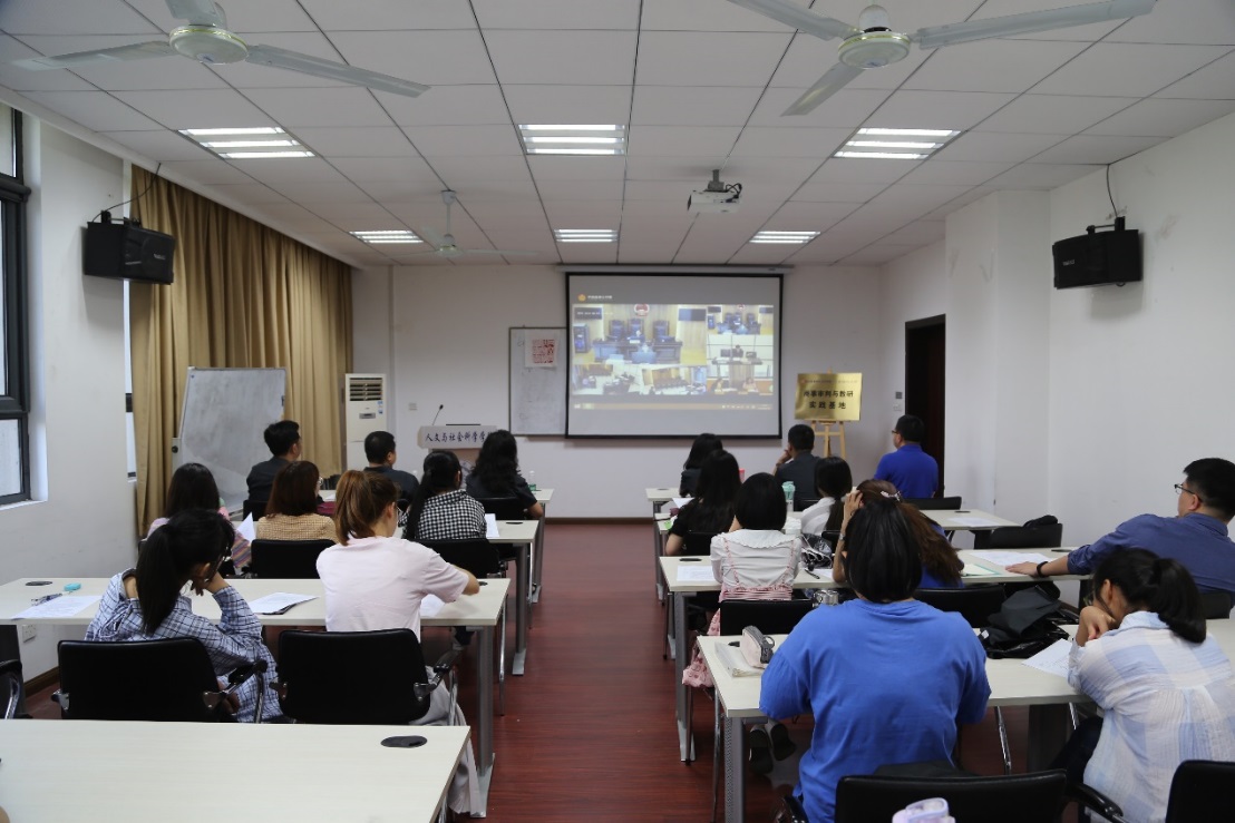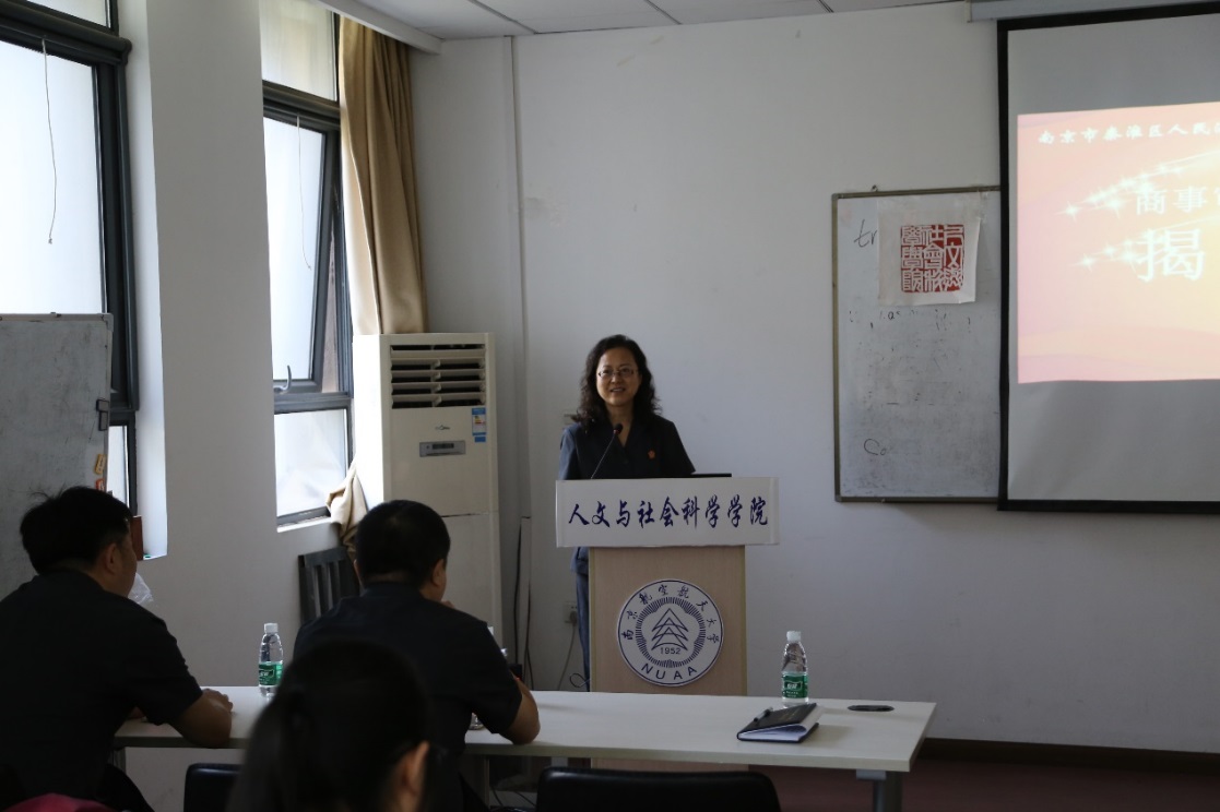 揭牌仪式结束后,人文学院法律系学生观看了南京市秦淮区法院关于买卖合同纠纷的法庭庭审直播。在庭审直播中,同学们感受了诉讼氛围,不仅了解了法庭审判程序和庭审纪律,而且更为直观的了解了法官是如何引导原被告双方围绕案件争议焦点进行辩论以及原被告是如何运用法律武器维护自己的权利。庭审直播结束后,秦淮区法院拥有丰富审判经验的民二庭庭长王辉宇法官和王建文院长先后为同学们做了案件点评。王辉宇法官从法官视角分析了案件的主要争议焦点以及庭审中应当注意的事项。王建文院长立足案件本身,从商法理论视角出发多维度地分析了案件。
