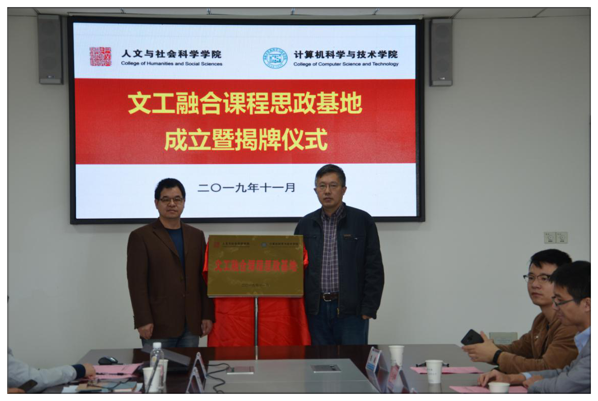 为了切实推进“不忘初心、牢记使命”主题教育扎实开展、取得成效,认真落实两学院理论中心组联合学习研讨成果,紧紧围绕立德树人根本任务,发挥专业优势,推进学科交叉融合、创新课程思政。11月7日,韩漫画 、计算机科学与技术学院/人工智能学院联合举行“文工融合课程思政基地”成立暨揭牌仪式。两学院领导班子成员、教师代表参加仪式。人文学院党委书记刘虎、计算机学院党委书记刘健荣共同主持仪式。