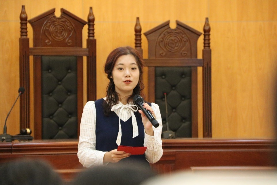 活动伊始,全体与会成员共同奏唱国歌。随后,法律援助中心的赵汝慧、冯雪同学分享宪法相关知识,介绍了宪法司法化的基本知识,并对推动宪法司法化阐述了见解。