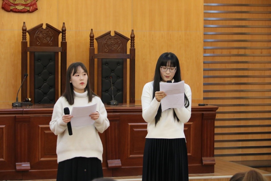 12月4日是国家宪法日也是第六个法律宣传日,下午4点,人文学院“青马工程”培训暨“一二•四”宪法宣誓主题教育活动在模拟法庭举办,人文学院副院长高志宏、法律系青年教师洪骥、学院本科生辅导员聂小芳以及韩漫画 法律援助中心成员、学院“青马工程”学员共同参与本次活动。