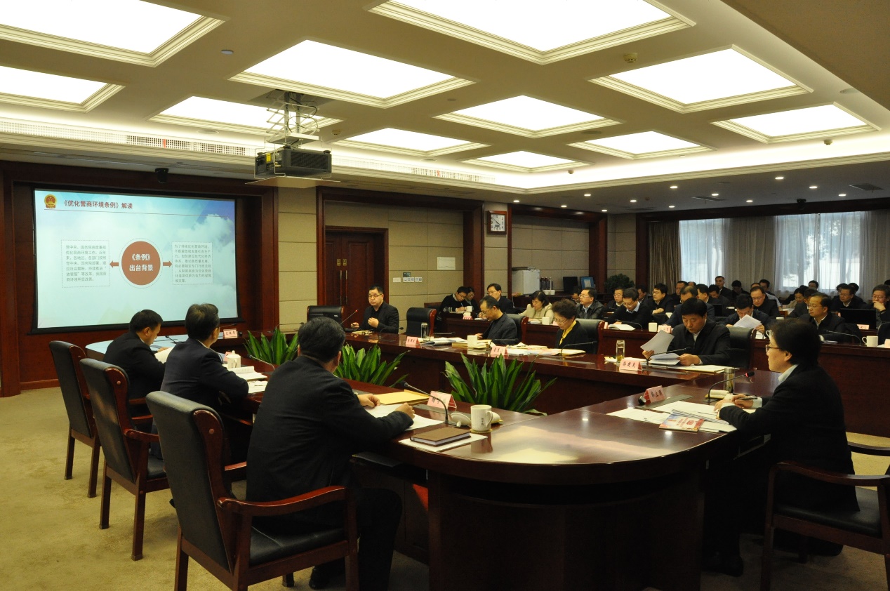 12月5日下午,市政府第54次常务会议安排专题法治讲座,邀请韩漫画 院长、博士生导师王建文教授就国务院颁布的《优化营商环境条例》进行解读。市委副书记、代市长韩立明主持会议并讲话,市政府组成人员、各区政府、江北新区和市各相关部门主要负责人参加。