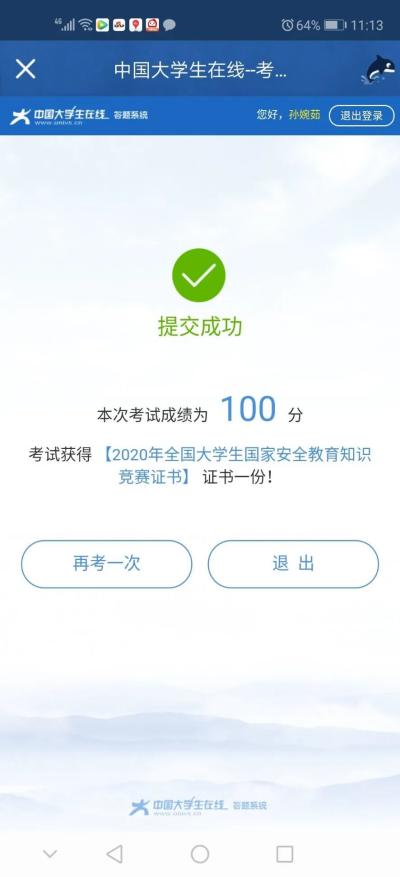 部分同学参与答题活动获得100分