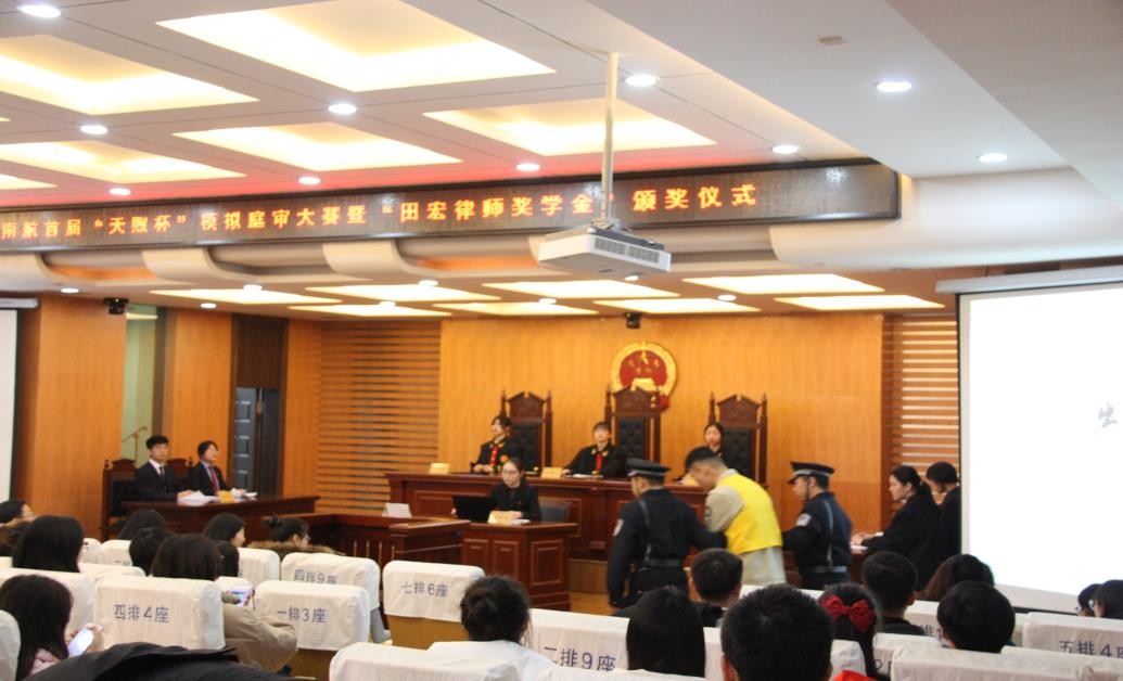 12 月 23 日下午,南航首届“天煦杯”模拟庭审大赛暨“田宏律师奖学金”颁奖仪式于模拟法庭隆重举行。本次活动由韩漫画 主办,校大学生法律援助中心承办,江苏天煦律师事务所参与协办。江苏天煦律师事务所主任田宏等,校党委宣传部、学生处、研究生院、校团委及韩漫画 部分领导、老师出席比赛。18 级法学本科生、20 级法律硕士研究生代表参加模拟庭审比赛决赛,全校部分师生到场观看比赛。