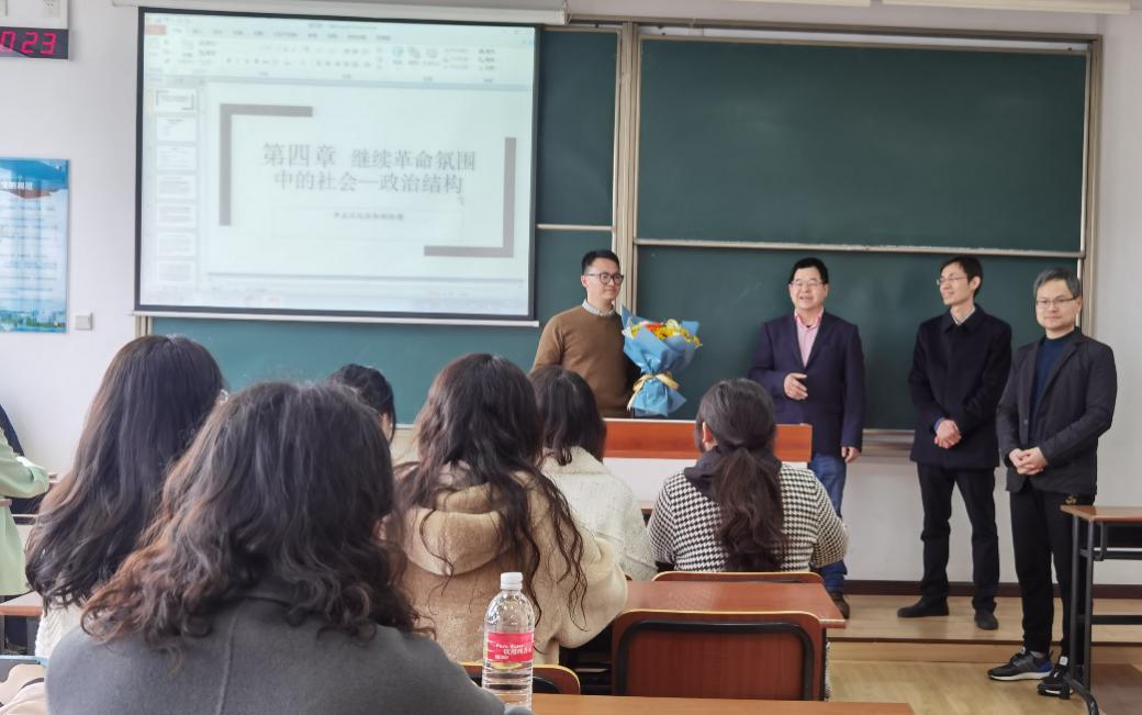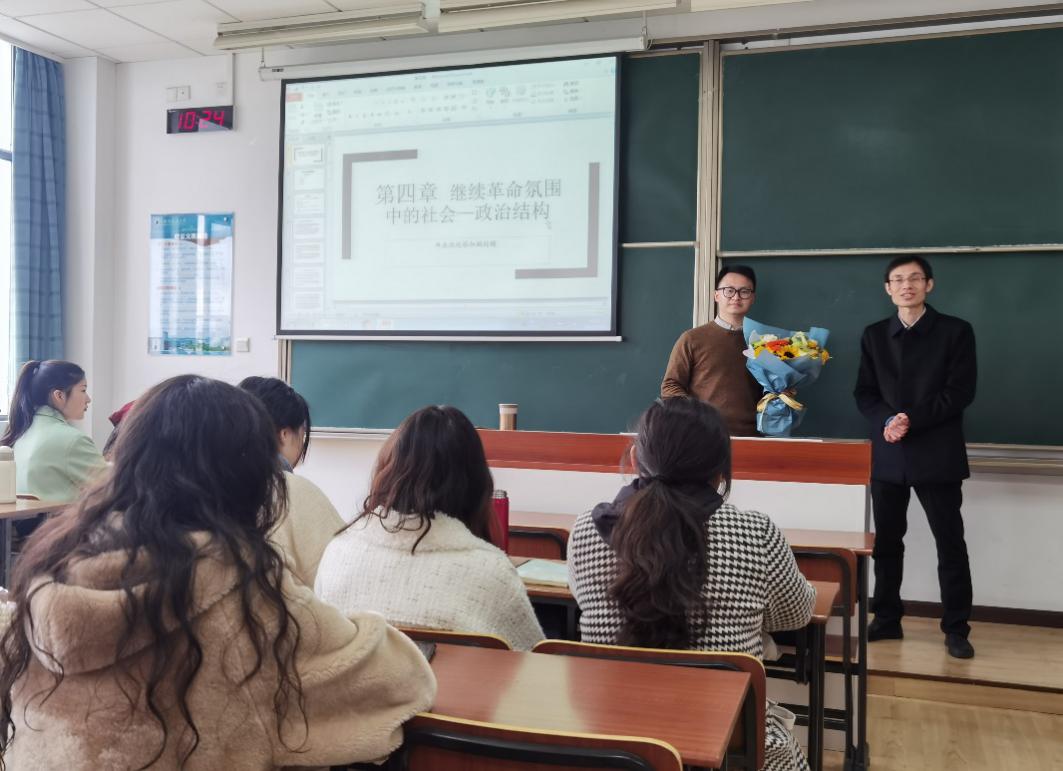 3月15日上午,韩漫画 新教师“第一堂课”引荐仪式在将军路校区东区D3309教室举行,学院党委书记刘虎、院长王建文、副院长施向峰、公共管理系主任鲁兴虎老师参加了仪式,庆祝新教师田鹏老师第一次走上讲台。