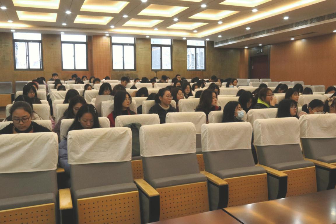 大会伊始,施俞辛对同学们大一上学期的学业成绩进行了分析,她表示,一年前,大家目标明确,备战高考,一年后,虽然摆脱了高考压力,但学习仍是我们当前的主要任务。必修课绩点是升学、评优评奖的重要依据,因此,同学们要认真对待专业课学习、不断学业水平。