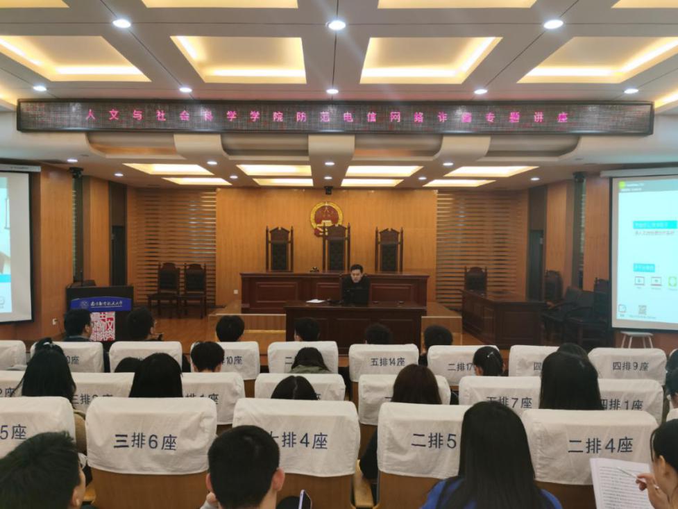3月24日晚,学院邀请到了保卫处治安管理科科长周栋栋开展防电信网络诈骗专题讲座。周栋栋重点介绍了近年来电信网络诈骗的主要形式,详细阐述了刷单兼职、冒充淘宝客服、假冒QQ好友借钱、售卖游戏账号等诈骗的具体案例,通过和现场观众进行诈骗过程的模拟,以生动有趣的方式提醒学生增强安全防范意识,并且学会用法律武器保护自己的合法权益。最后,参与讲座的师生一齐宣读了防范电信网络诈骗的方法,即“不轻信、不透露、不转账”,其安全防范意识得到了显著提升。