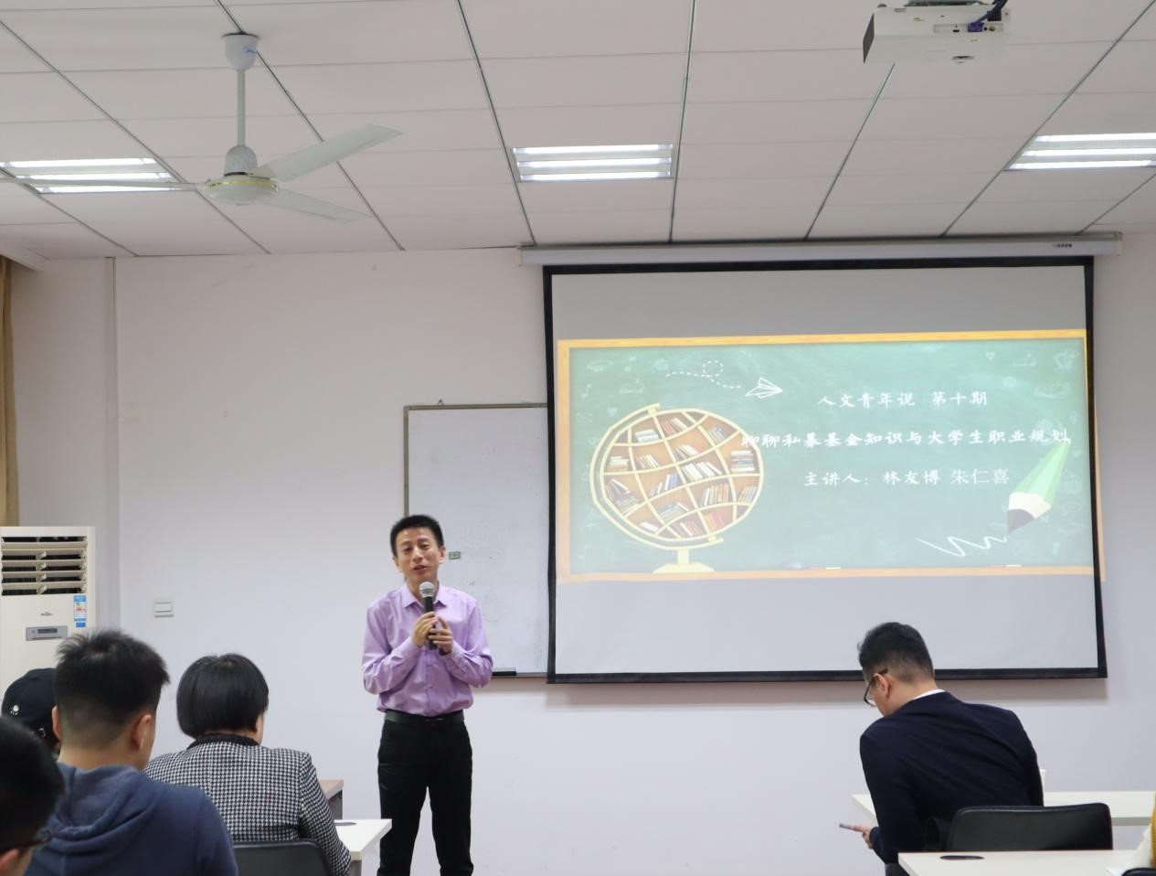 4月11日上午,第10、11期“人文青年说”优秀院友分享会在人文学院210教室如期举行,本期分享会邀请了优秀院友——林友博,朱仁喜。院党委副书记尹春苹、辅导员聂小芳以及人文学院60余名本科生、研究生参与了此次的分享会。