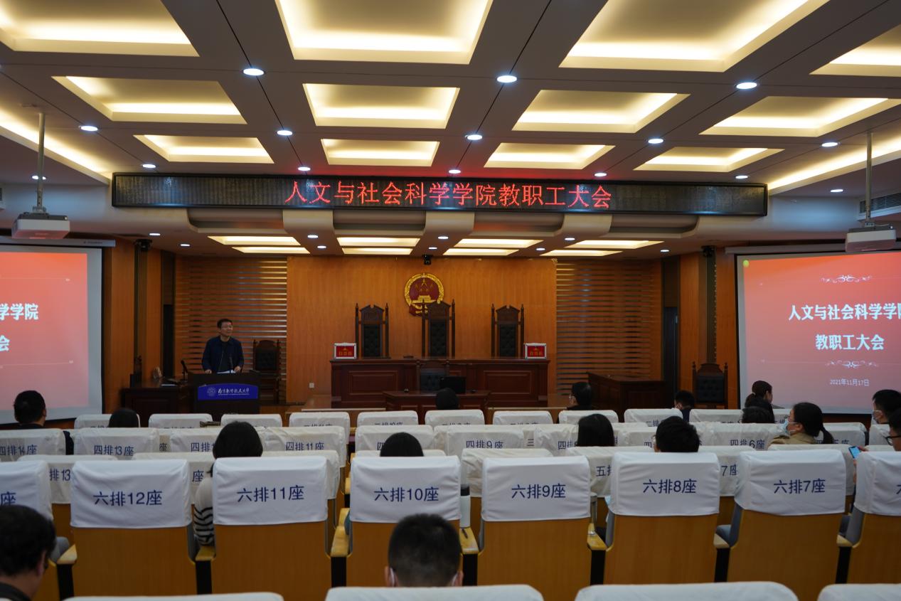 在模拟法庭召开教职工大会,选举产生第八届教代会、第十七届工代会代表。学院党委书记楚广兴主持会议。