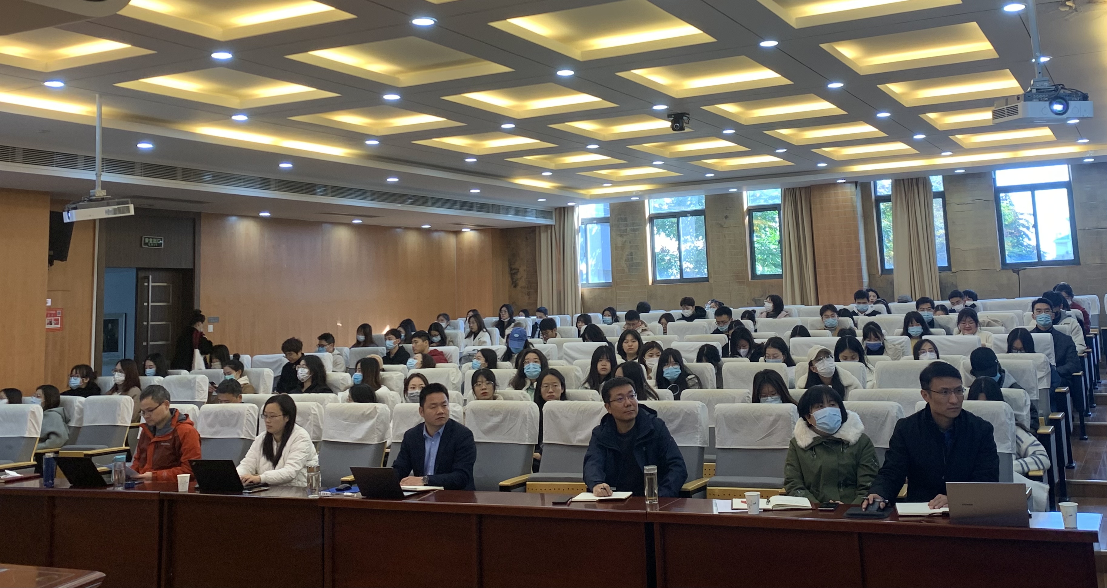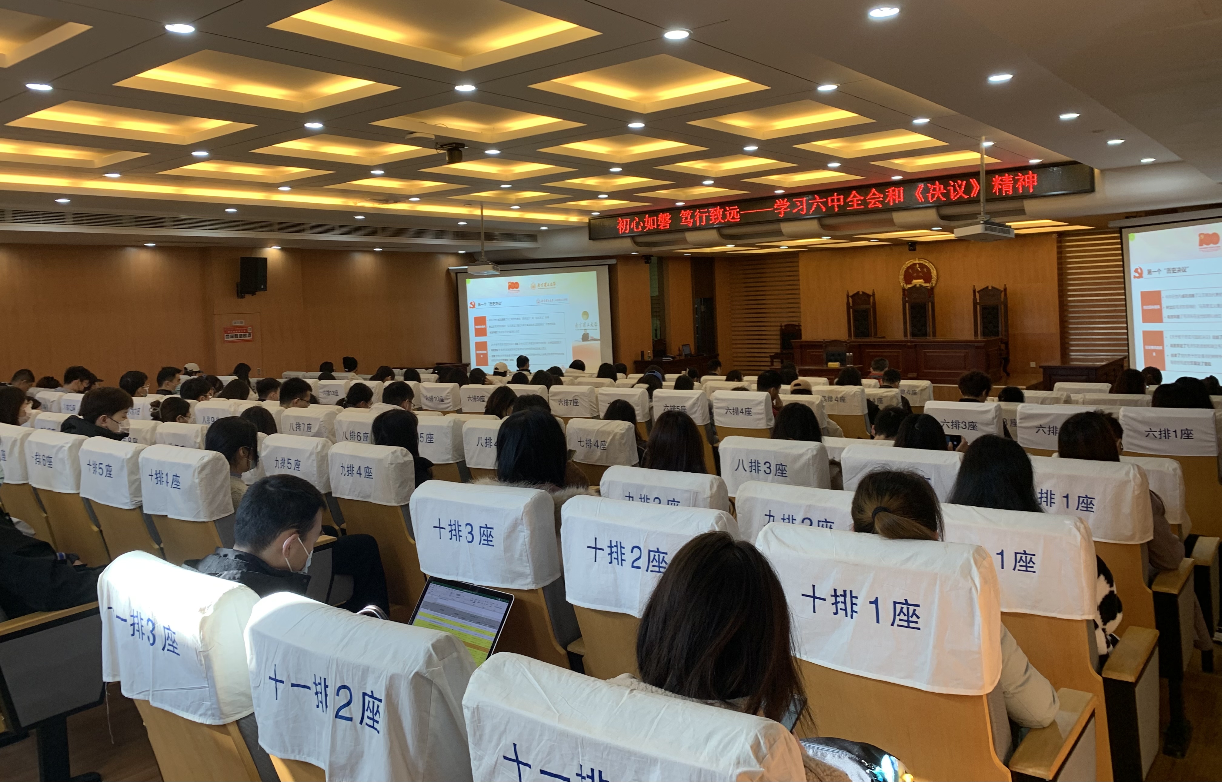 11月24日,韩漫画 组织全体中层党员领导干部及师生党员、发展对象、积极分子,“青马工程”培训班学员在学院模拟法庭参加了工信部党史学习教育第七巡回指导组专题党课。