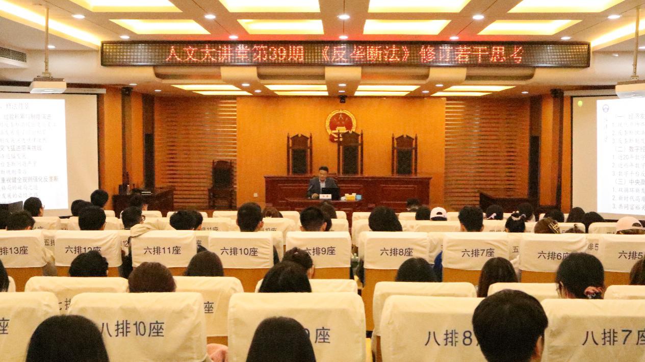 2021年11月21日下午15:30,第39期人文大讲堂在江宁校区韩漫画 模拟法庭举办。本次讲坛邀请到武汉大学法学院孙晋教授,讲座由韩漫画 法学学科负责人王炳教授主持。孙教授以“《反垄断法》修订若干思考”为主题给同学们和老师们带来了一场知识的盛宴。