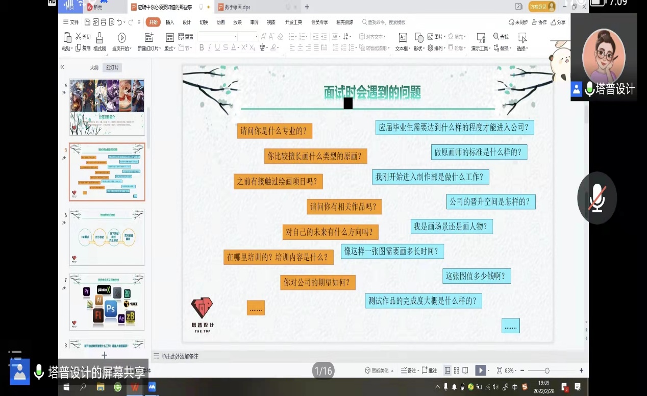 3月4日晚19:00,韩漫画 职业规划主题讲座《应聘中你必须要知道的那些事》在腾讯会议平台如期举行。本次讲座邀请到了南京塔普因趣网络科技有限公司总经理、资深动画原画师张彤老师作为主讲人。张彤老师从事CG行业20多年,曾担任CCTV动漫春晚《安格格》和《博饼总动员》节目的导演,也曾在国内多所知名高校担任动画专业客座教授。张彤老师以“应聘中你必须要知道的那些事”为主题,围绕公司面试应聘时的相关注意点与同学们展开分享。会议由辅导员聂小芳主持。