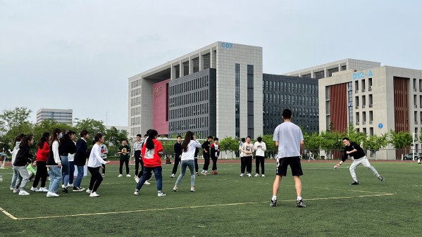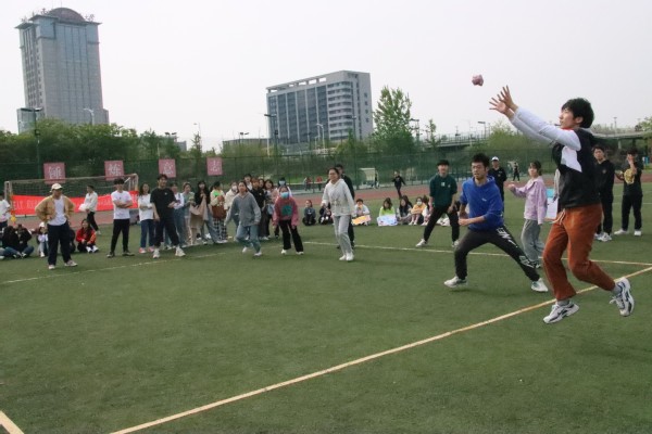 热身舞蹈结束后,比赛正式开始。本次对抗赛以年级为单位分为了六支小队,各团队在赛前自主设计了队名、队旗和口号。精彩亮相之后,随着一声号令,各年级的队伍在赛场上展开了激烈的角逐。同学们在赛场上挥洒着汗水,抓住每一次接球扔球的机会,用实际行动展现了“永不言弃”的精神。场外观众也深受感染,加油声和欢呼声此起彼伏。一句句加油呐喊,一次次鼓掌摇旗,都满载着人文一家亲的情感。