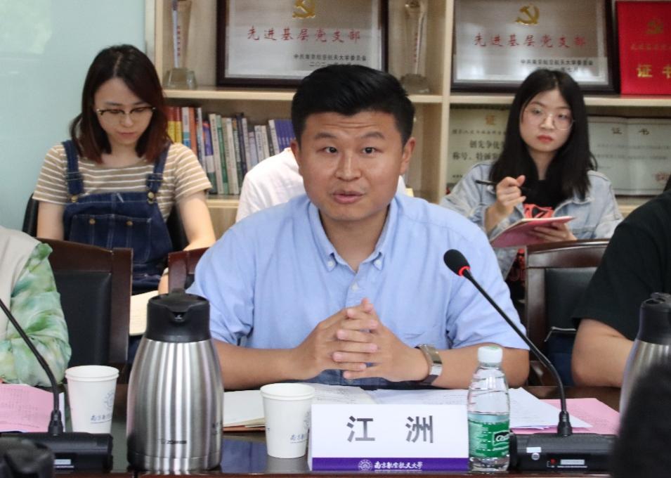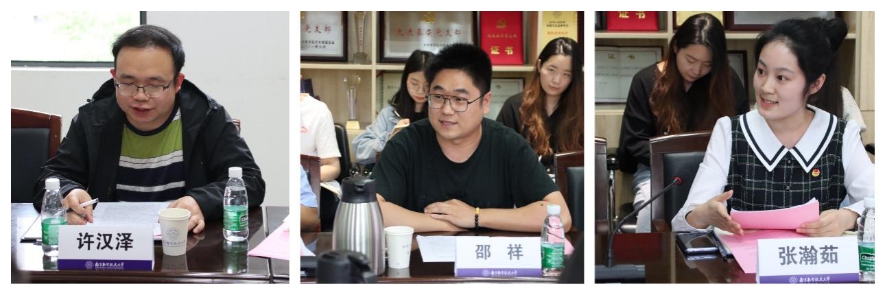 在交流发言阶段,学院公共管理系党支部书记许汉泽、雨花街道农花社区经济网格员邵祥、学院新发展团员张瀚茹分别从青年教师、社区一线工作者、青年团员的角度分享了对习近平总书记重要讲话精神的学习感悟。