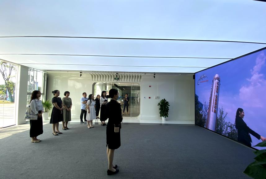 在玄武区红山街道党工委副书记邹玲华的陪同下,刘思辰一行人实地参观了“红领·星河”五星聚力党建阵地以及星河WORLD产业园区,切实了解了红山街道党建工作以及星河WORLD产业园运营模式、入驻企业等情况。