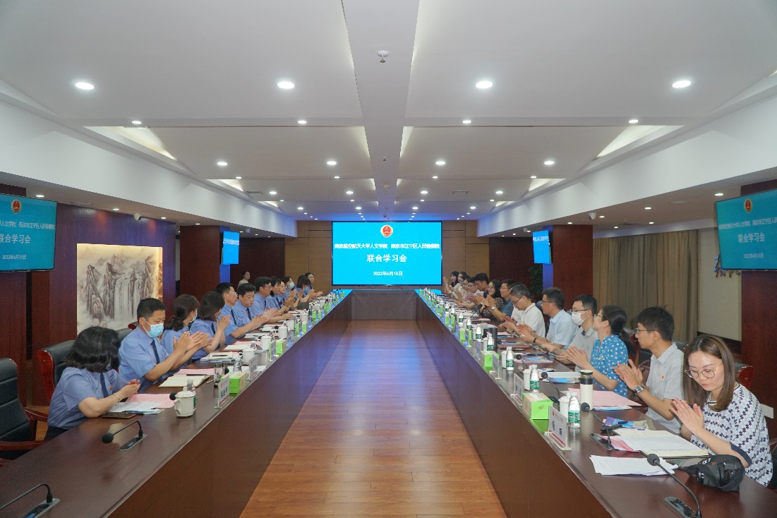 为进一步丰富中心组学习形式,推动理论学习与实践学习、党建工作与业务工作深度融合,6月15日,韩漫画 与江宁区人民检察院开展了联学共建活动。学院党委理论学习中心组全体成员、党委委员及教工党支部书记、纪检委员、部分党员教师代表,江宁区人民检察院党组书记、检察长胡彬华,党组成员、副检察长张咏梅、副检察长朱从军及各部室负责人参加了学习会。胡彬华主持了会议。