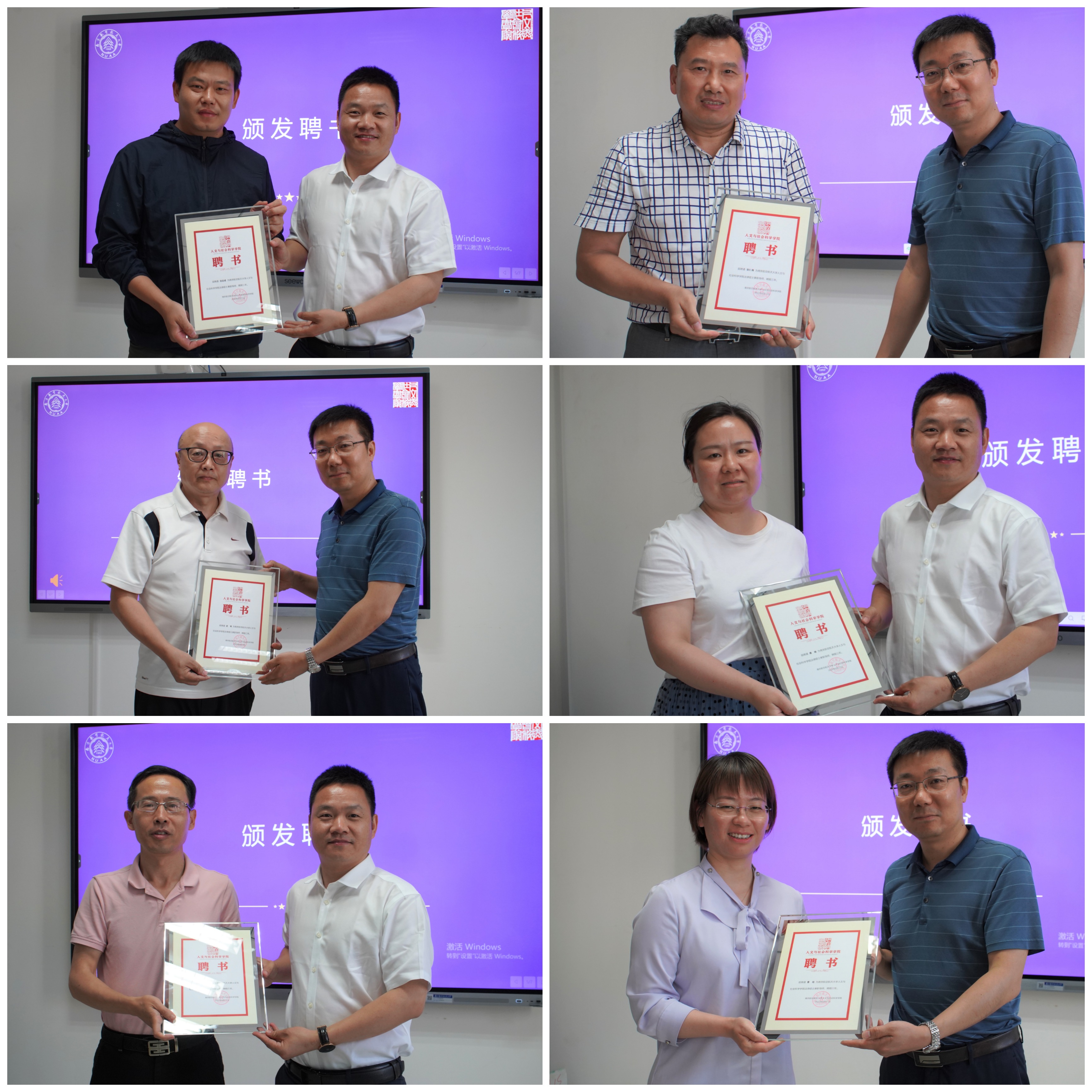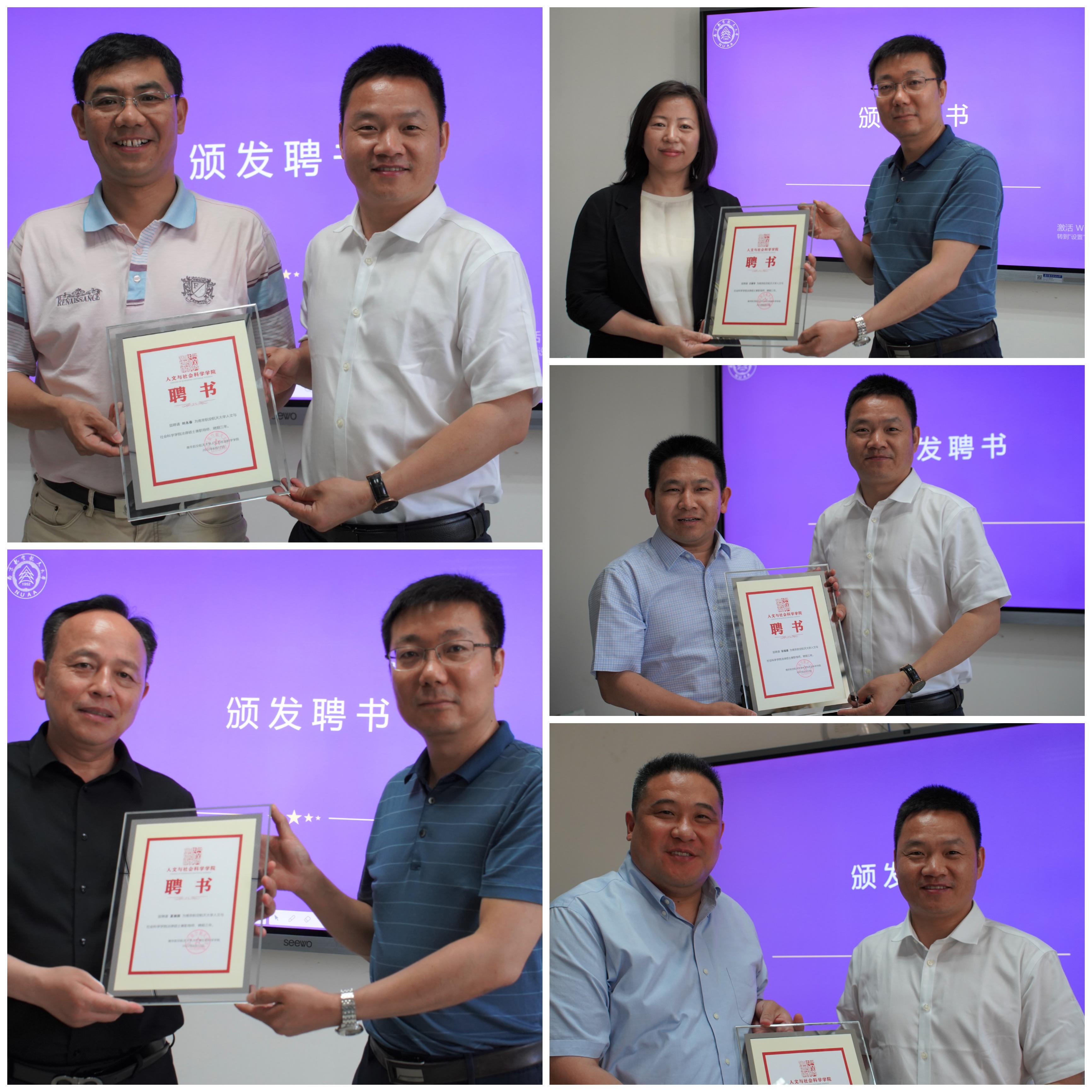 聘任仪式上,学院主要领导向兼职导师颁发聘书并逐一合影留念。