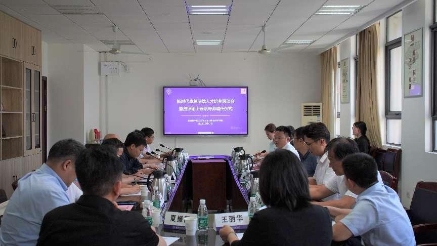 6月17日下午,韩漫画 召开新时代卓越法律人才培养恳谈会暨兼职导师聘任仪式。来自江苏省高级人民法院、江苏省法学会、南京市台办、南京市建邺区人民法院、南京市江宁区人民检察院、南京市秦淮公安分局、江苏中虑律师事务所、江苏昊程昊律师事务所、江苏润国律师事务所、江苏聚能科技投资发展有限公司等单位的专家参加本次恳谈会和兼职导师聘任仪式。学院党委书记楚广兴、院长高志宏、副院长茅晓嵩、法律硕士中心副主任张鸣胜、法律硕士办公室主任刘耀彬、法律系王炳教授、马荣春教授等参会,会议由高志宏主持。