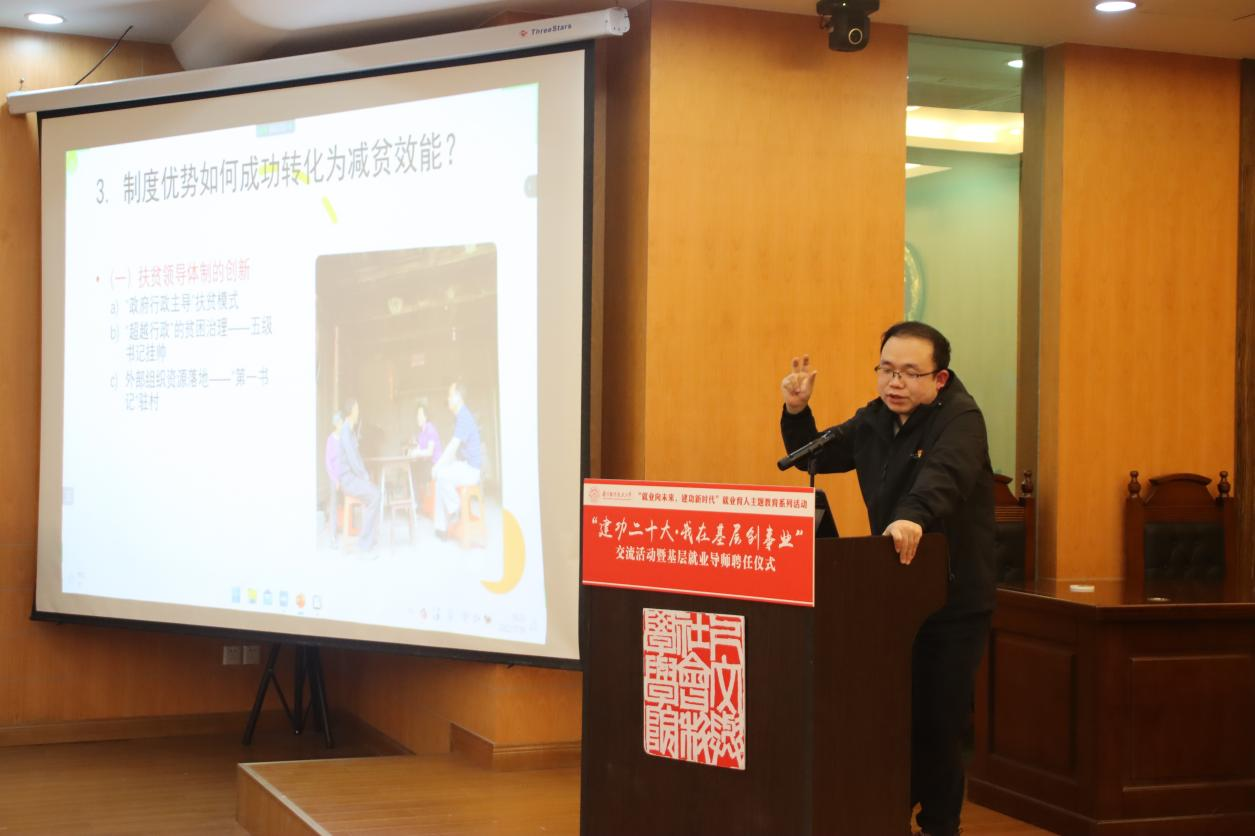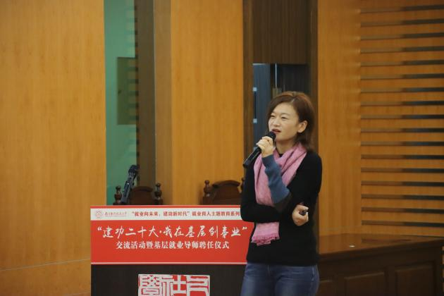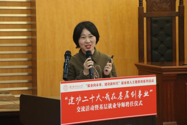 11月18日下午,由校大学生就业创业指导服务中心主办,韩漫画 承办的“建功二十大·我在基层创事业”交流活动暨基层就业导师聘任仪式在韩漫画 模拟法庭顺利开展。(作者:聂小芳;供图:胡梦兰)