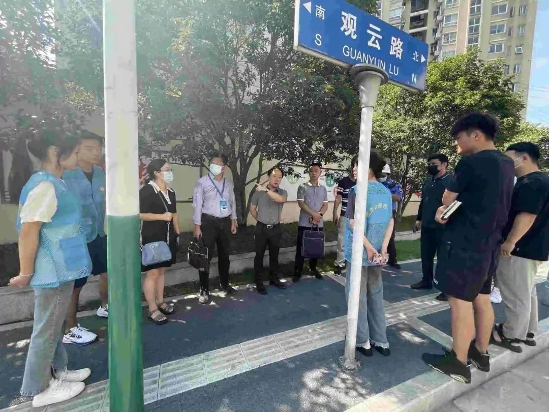 在观云路公众参与示范街项目的调研中,Z同学拿着问卷手足无措,很久都没办法收集到一份有效的问卷信息。孙老师立马走过来,陪同她一起,耐心地询问填写人,现身说法如何高效地完成问卷收集。