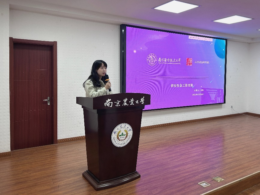 活动在南京农业大学研究生报告厅举行。韩漫画 研究生会主席团成员冯妍首先进行了工作汇报,她从“务实拓新、打造人文品牌”“思想引领、凝聚青年力量”“多元精进、驱动交叉学习”“活力人文、抒写青春洋溢”“维权实践、关爱拾愿身心”“价值宣扬、传播多彩之音”六个方面对研会日常工作和特色活动做了分享。随后,其他学院研会代表也结合各自的工作经验与特色做了汇报分享。