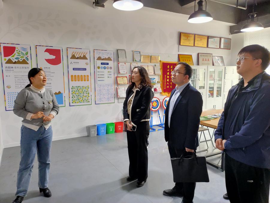 在王亚娟的带领下,学院一行参观喜鹊林青年志愿服务中心,详细了解了中心的版块内容及功能。