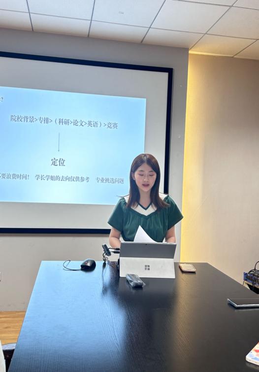 陈蓉从确定目标、调整心态和充分准备三个维度为同学们分享了保研的心路历程和个人经验,提出要有针对性的选择夏令营,做好充分准备;陈佳瑶结合“积攒”+“推销”的保研公式,从个人定位出发,向大家介绍了保研定位的方式以及如何在面试中展现最大优势;阮其乐同学结合自身经历介绍保研夏令营中的相关注意事项,提醒同学们注意不同院校的入营资格、学校偏好、考查要点等内容。