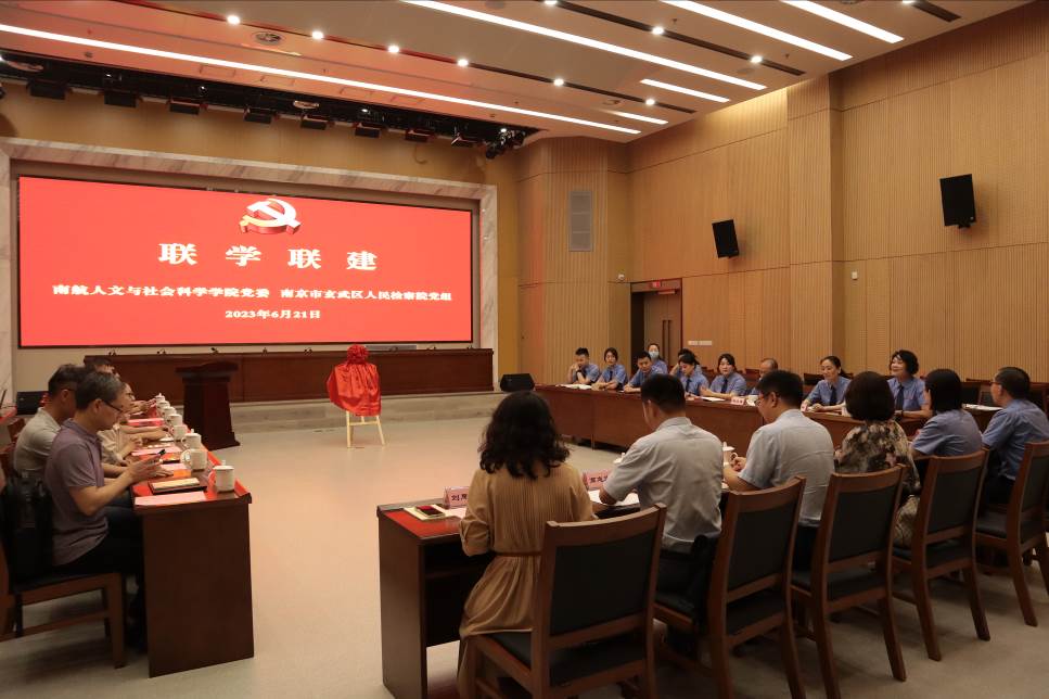 院党委书记楚广兴以《强化校检共建,聚力培养敢担当、重实践的卓越法政英才》为题,分享了学习习近平总书记关于高等教育与人才培养的重要论述以及《习近平关于调查研究论述摘编》的体会。他结合“担当”和“实践”两个关键词阐述了新时代背景下南航法学人才培养的目标和愿景,从调查研究的对象、环境、内容、结果四个维度剖析了调查研究对于培养敢担当、重实践法学人才的重要意义。他表示,学院将进一步强化学科专业优势,发挥服务社会的功能,积极推进落实与玄武区检察院的交流合作,共同为培养更多更优秀的法治人作出贡献。