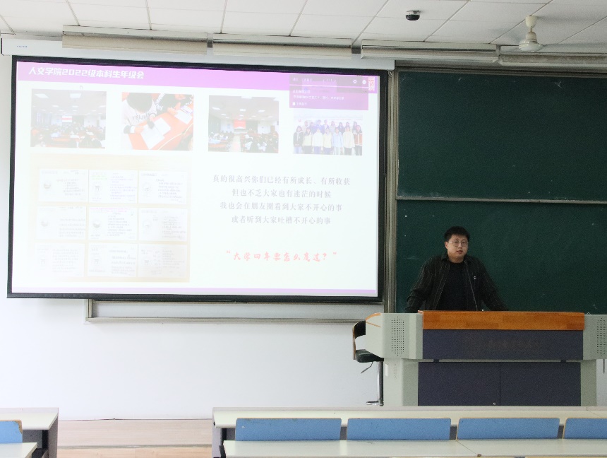 6月1日下午,韩漫画 在将军路校区D1113教室开展“讲讲‘大学四分之一处’的‘贴心话’”2022级本科生月讲评, 2022级辅导员孙长胜主讲,全体2022级本科生参加。