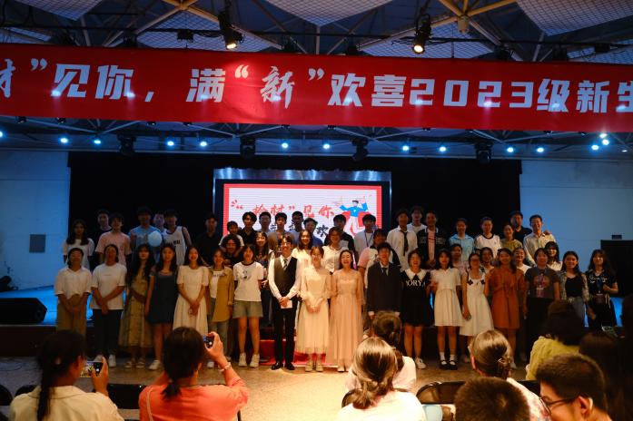 “与你相遇,好幸运!”2023级新生们一展歌喉,带来《小幸运》、《你还要我怎样》、《红色高跟鞋》、《全是爱》等精彩献唱,唤醒青春记忆;舞蹈《hype boy》、《开心超人》更是将晚会气氛推向高潮,展现当代大学生的青春活力;乐器表演《贝加尔湖畔》、《美丽的神话》则带给观众专业级的音乐享受。最后,在同学们的热情欢呼中,两学院新生辅导员倾情献唱,晚会在全场齐唱的热烈氛围中落下帷幕。