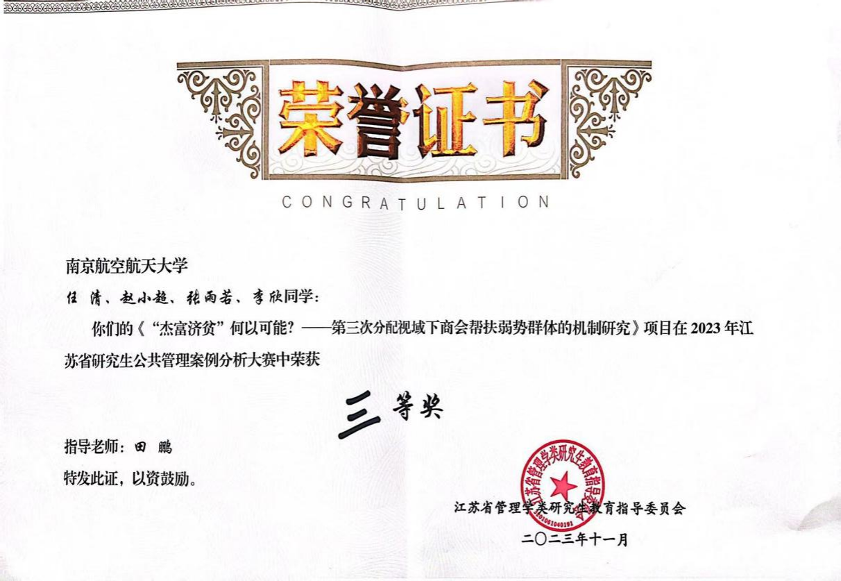 “江苏省研究生公共管理案例分析大赛”始于2020年,已成为江苏省内具有影响力的大赛之一。2023年,本次赛事主要立足江苏经济社会高质量发展的内在要求,以“精准发力,实现强富美高新江苏”为目标导向,注重理论与实践的紧密结合,引导瞄准小切口、反思解决大问题,鼓励跨学科参与。赛事以社会调研、案例撰写与分析、现场辩论等为主要方式,全面提升江苏省研究生综合运用公共管理理论和公共政策分析方法,科学有效挖掘、分析和解决公共管理实际问题的能力,更好地服务支撑地方经济社会发展需要,为公共政策制定和地方治理贡献学科智慧。
