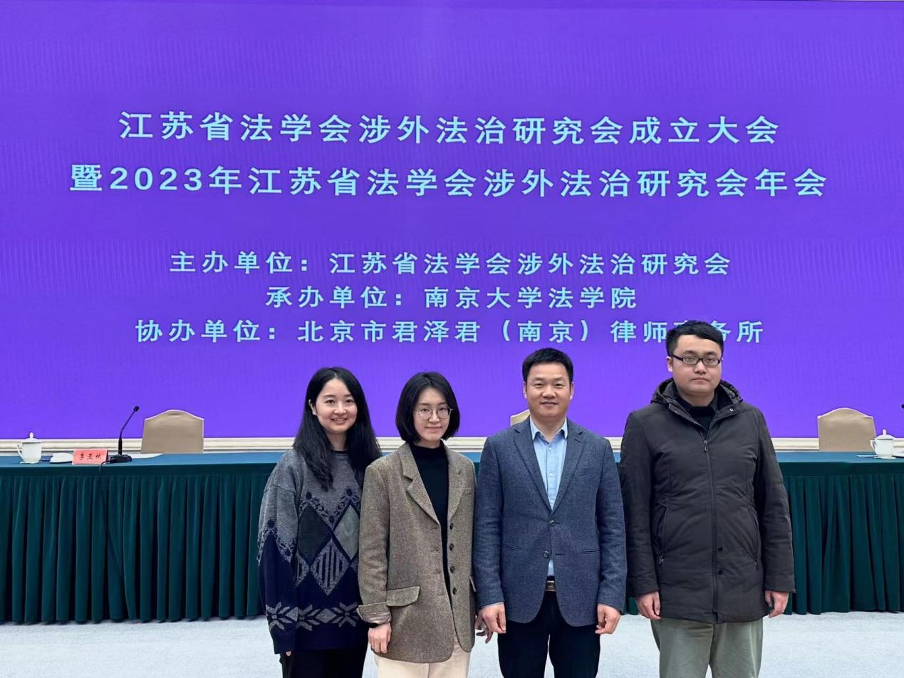 2023年12月2日上午,江苏省法学会涉外法治研究会成立大会暨2023年江苏省法学会涉外法治研究会年会在南京召开, 韩漫画 院长高志宏教授及法律系教师洪骥、于焕、张彧、何叶华、张媛媛等参会。(作者:何叶华)