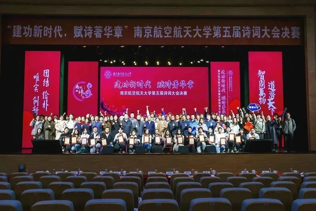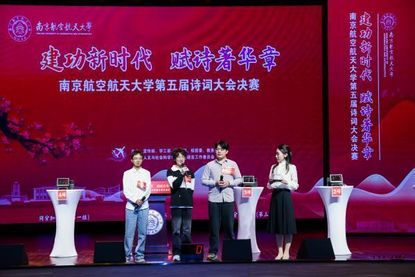 第五届诗词大会总决赛,在将军路校区艺术中心演艺剧场成功举办。中国工程院院士、校党委书记单忠德,校党委常委、宣传部/教师工作部部长王晖,江苏省广播电视总台主持人、一级播音员周正坤,江苏省社科联理事、南京师范大学文学院教师陶慧,2023中国诗词大会总冠军、南航校友、中国南方航空飞行教员马保利,校发展联络部、研工部、教务处、学工部、校团委、人文学院等相关同志参加活动。