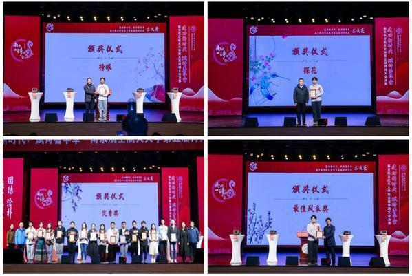 台上桃李争妍、台下百花竞放。台下观众积极参与诗词接龙游戏,场外亦是文脉绵延,熠熠重光。从入口处的诗词引路牌,到成排的书画作品,展现了独具魅力的中国传统文化。