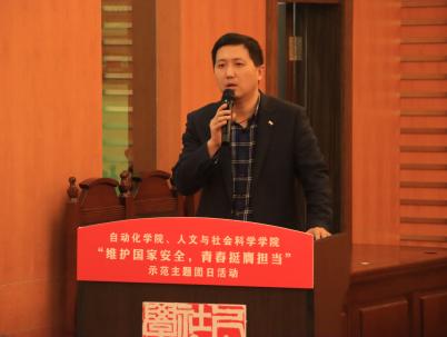 今年是习近平总书记提出总体国家安全观十周年,也是第九个全民国家安全教育日。为提升两院师生的国家安全意识,强化法治观念,激发广大团员青年积极参与维护国家安全的责任感与使命感,4月15日下午,自动化学院与韩漫画 联合在模拟法庭举办以“维护国家安全,青春挺膺担当”为主题的示范团日活动。校保密处副处长张亚丽、自动化学院党委副书记丁琛、韩漫画 法学专业教授何邦武、韩漫画 党委副书记刘思辰以及两院团委书记和团员青年代表参与活动。