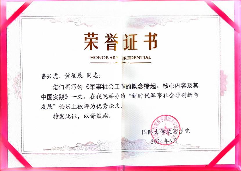 此次论坛中,韩漫画 社会工作硕士(MSW)教育中心主任鲁兴虎老师与硕士研究生黄星晨共同撰写的论文《军事社会工作的概念缘起、核心内容及其中国实践》荣获优秀论文奖。论文通过对军事领域各方面的深入研究,提出了促进军事社会工作发展的新思路。