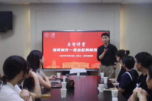 在院楼104教室开展“如何制作一张出彩的简历”为主题的求职就业培训会。本次讲座邀请公考培训资深讲师张华涛主讲,大三年级及研二学生积极参与。