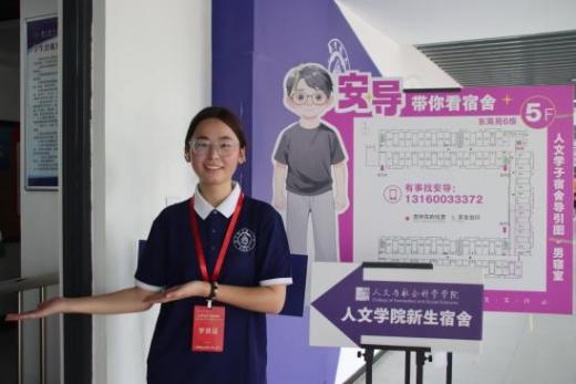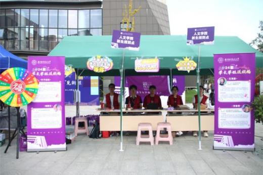 暖心布置营造迎新仪式感。为了营造暖心、温馨、创新的迎新氛围,学院精心布置新生报到点、张贴宿舍门贴、摆放宿舍指示牌、打卡点等,并且在校门口、迎新点和宿舍门口设置迎新志愿岗,志愿者们帮助新生完成快速报到,并为每一位新生发放装有为每位新生订制人文报到专属文创礼包,满满的仪式感让新生在报到期间不断增强对学院的认同度和融入感。