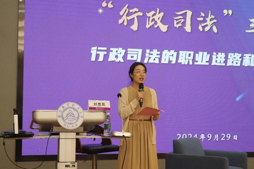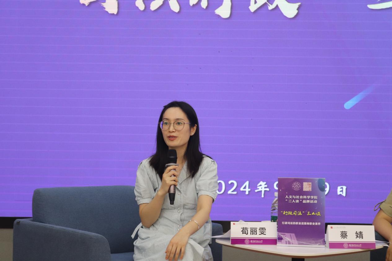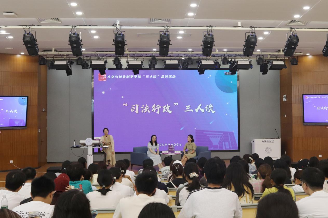 9月29日下午,韩漫画 在天目湖校区巡天楼二楼报告厅举行职业规划“司法行政三人谈”品牌活动。溧阳市司法局复议应诉科科长荀丽雯、溧阳市司法局政治处主任蔡靖作为嘉宾参加活动,活动由学院党委副书记刘思辰主持。