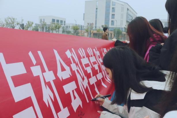 最后,同学们在横幅上写上自己对祖国美好祝福和对学院的美好期许并合影留念。