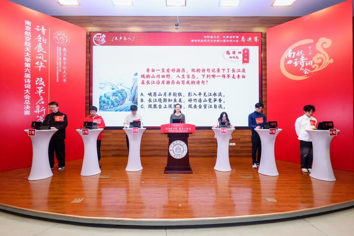 今年10月,“诗韵展风华,改革启新篇”南航第六届诗词大会正式启动,全校师生积极响应、广泛参与。诗词大会不仅为南航学子提供了一个展示才华和交流学习的平台,更激发了大家对中华优秀传统文化的热爱和传承意识。相信在未来的日子里,南航学子将继续秉持“智周万物,道济天下”的校训,在学习、科研、人生的舞台上挥斥方遒,绽放光彩!