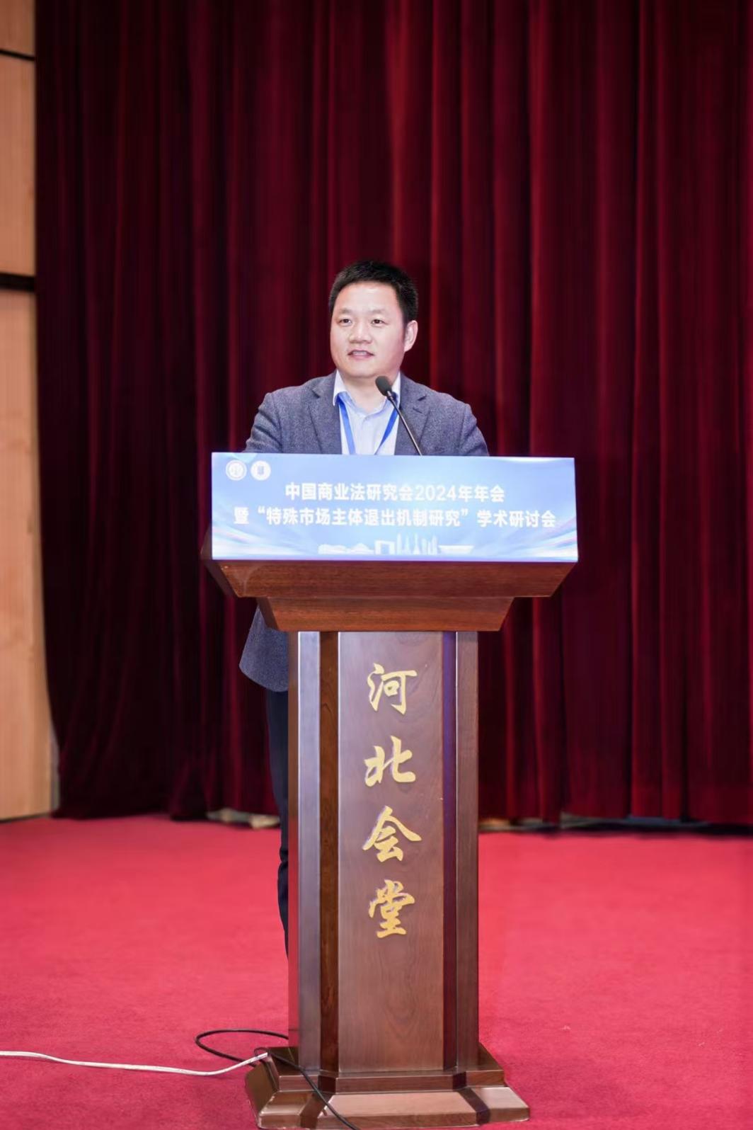 2024年12月20-22日,中国商业法研究会2024年年会暨“特殊市场主体退出机制研究”学术研讨会在河北省石家庄市举办。会议由中国商业法研究会主办,河北师范大学承办。中国法学会副会长、中国社会科学院学部委员陈甦,河北省政协副主席、河北省法学会常务副会长何秉群,河北省人大常委会法工委副主任袁任新,河北省高级人民法院副院长王利军,河北省检察院党组成员、副检察长任国强,河北省司法厅党委委员、副厅长乔新月,中国法学会研究部二处处长孙立军,中国商业法研究会会长、北京大学法学院教授甘培忠,河北师范大学党委书记黄晟等出席会议。来自北京大学、清华大学、浙江大学、中国人民大学、中国政法大学、日本国立冈山大学、韩漫画 等国内外高等院校,有关法院、检察院、律师事务所等实务部门代表300余人参会。韩漫画 院长高志宏教授及法律系熊敬副教授、陈苏豪副教授、郑文革老师参会。
