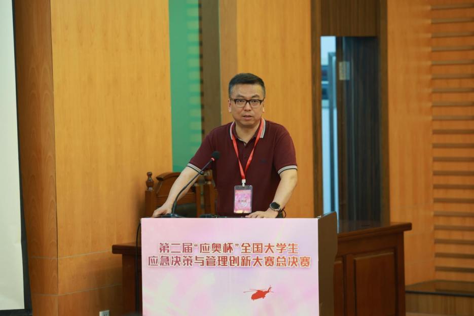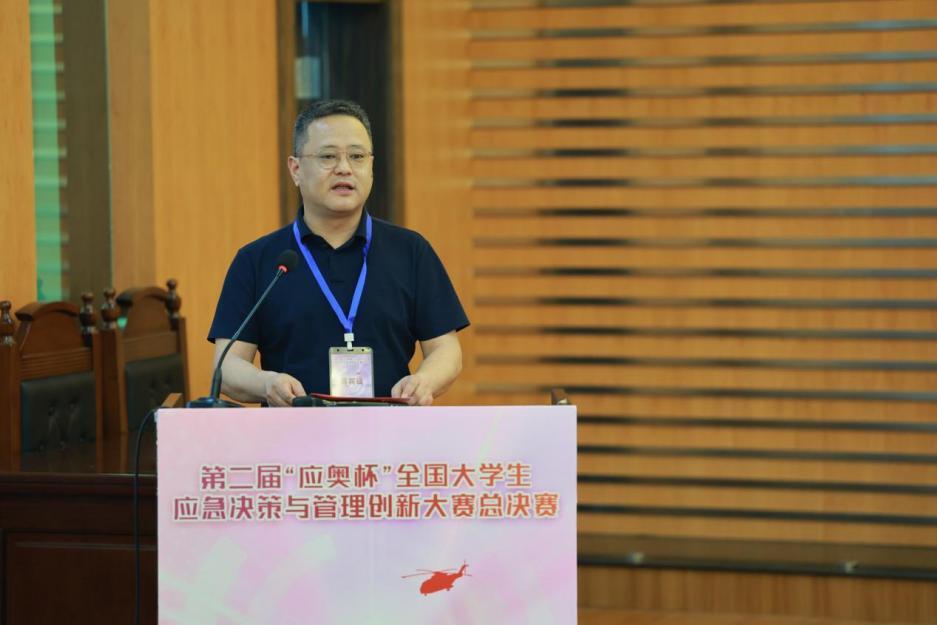 教务处副处长柯世堂教授致欢迎辞,他表示,本次大赛是贯彻习近平总书记关于应急管理重要论述的具体实践,为构建现代化应急管理体系培养创新人才。作为承办方,此次大赛为学校师生提供了与全国高校同行交流学习的宝贵机会,搭建了良好的合作桥梁,为新文科建设提供了新的发展动力。