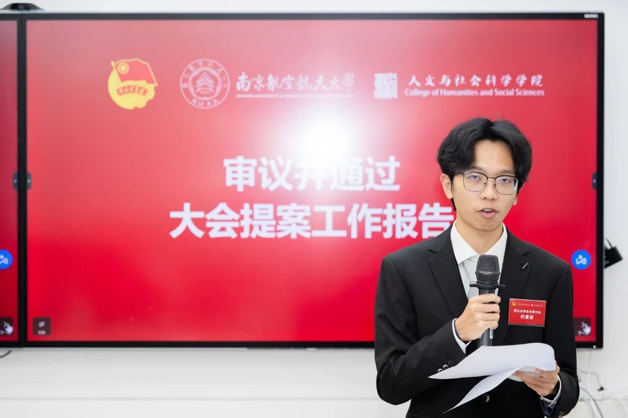 王安邦、战榆晴代表本次学生会、研究生会筹办委员会作大会提案工作报告。提案涉及公共服务、教学管理、校园文化、权益维护等八个方面,共计28项,既聚焦日常学习生活中的具体事项,也关注学科发展与校园建设的长远需求,充分体现了同学们积极参与学校民主管理的主人翁意识。